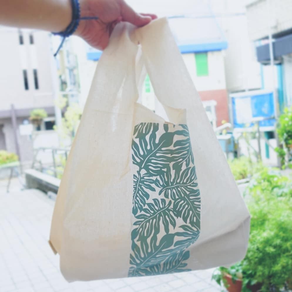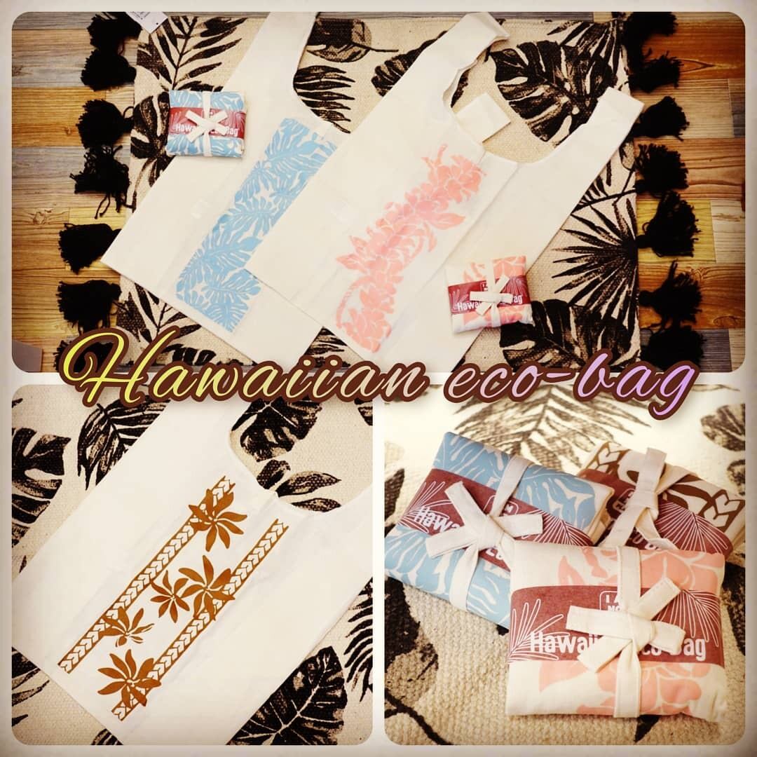 ハワイアン コットンエコバッグ プルメリア モンステラ ガーデニア