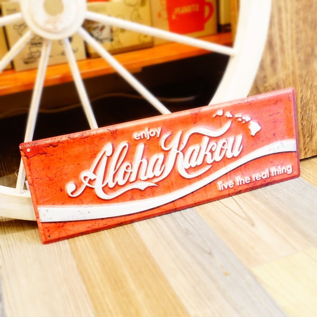 ハワイ直輸入 Aloha Kakou コカコーラ風 ブリキ看板 ティンサインボード