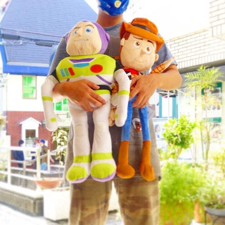 リアルなバズとウッディのぬいぐるみで