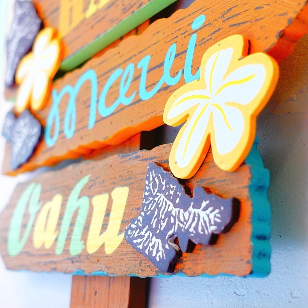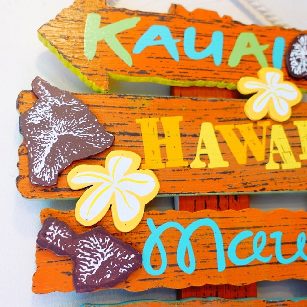 ハワイ4島のネームプレートがかわいいウッドサインです。