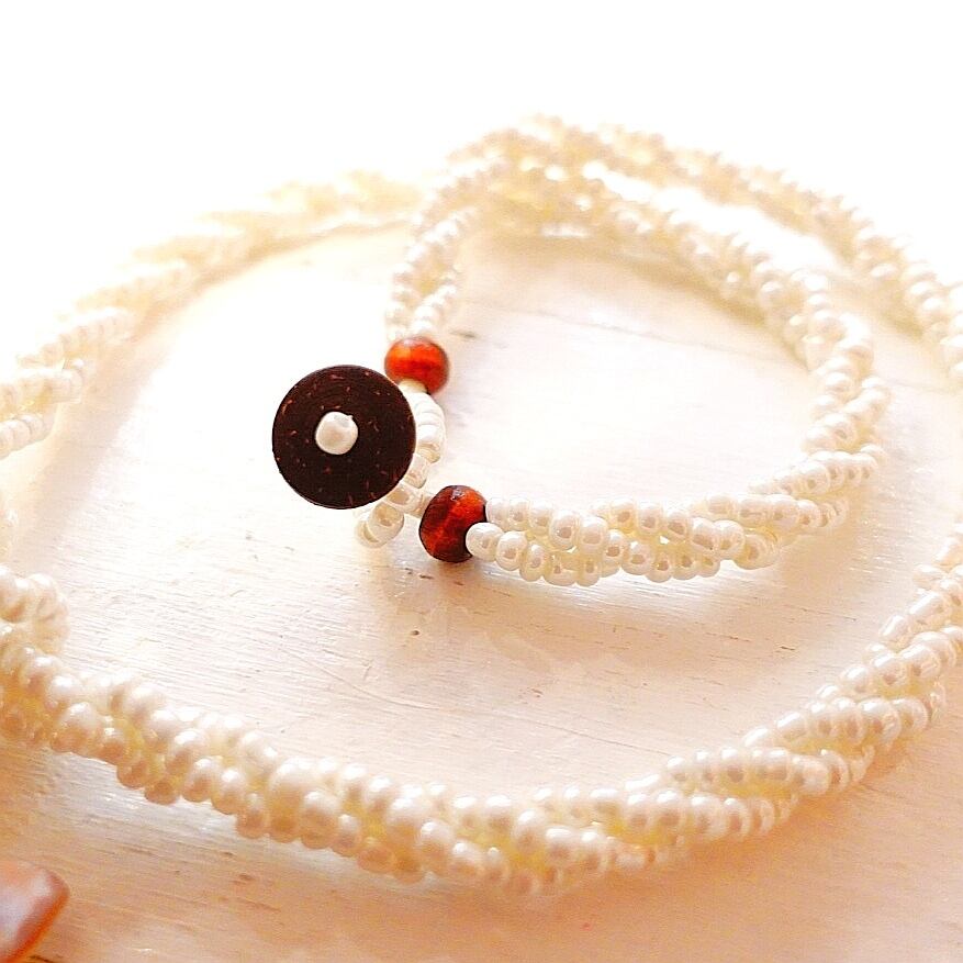 シェル&ピュアビーズネックレス ハワイアン雑貨 パイナップル ホヌ プルメリア ヤシの木 天然蝶貝 アクセサリー レディース