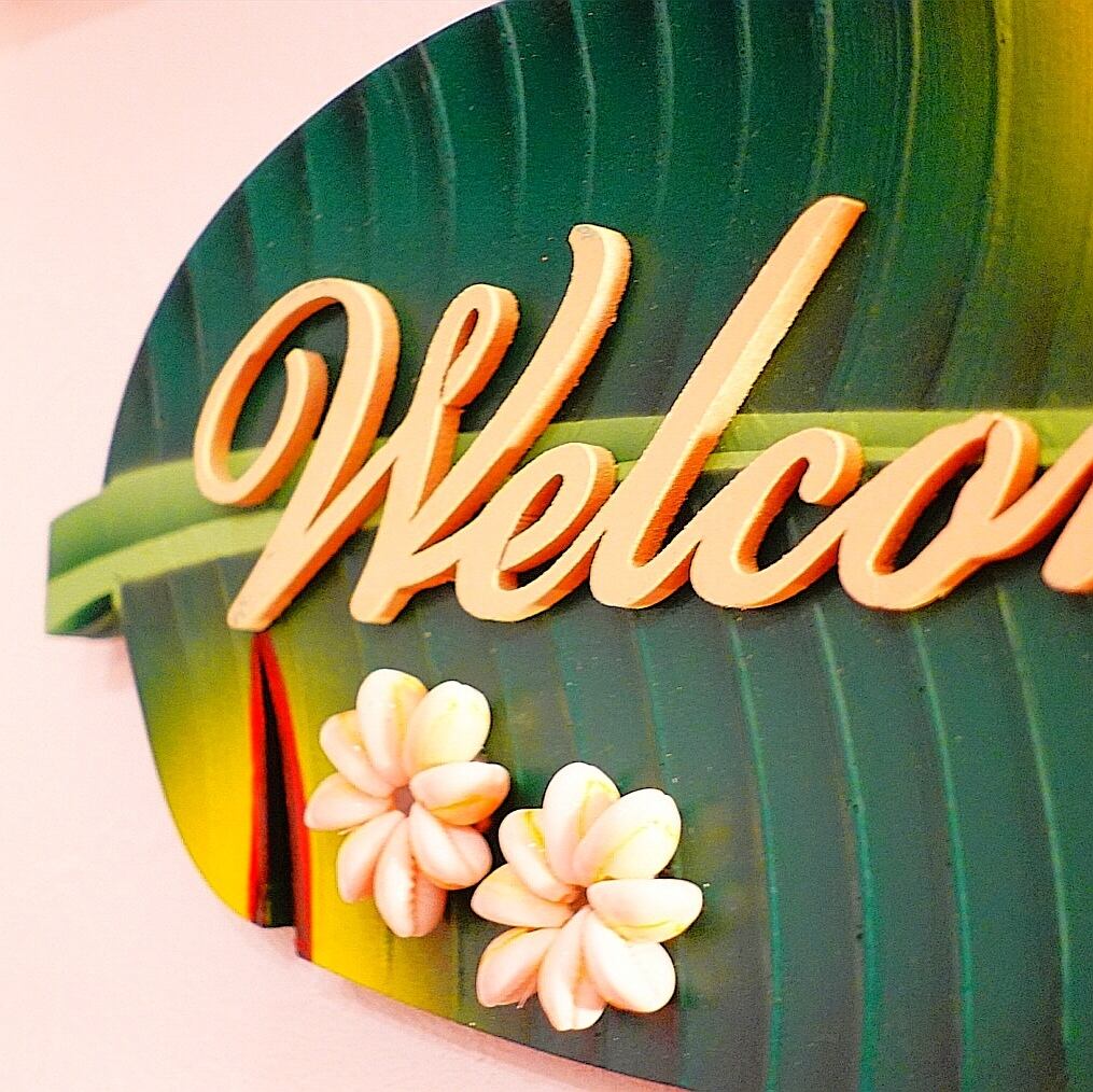 ハワイアン雑貨 バナナリーフ ウッドサイン ウェルカム ウッドボード インテリア ホヌ