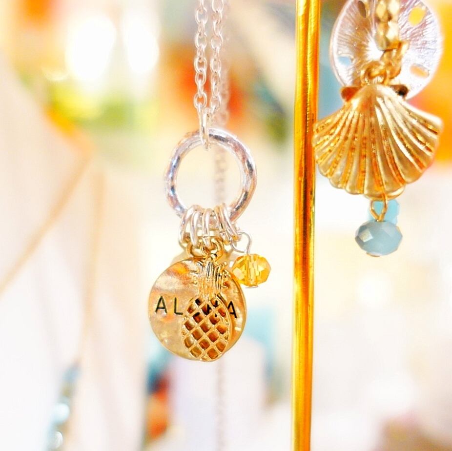 SplendidIris ヴィンテージアロハ&パイナップルネックレス ハワイアンジュエリー アクセサリー ハワイ直輸入