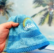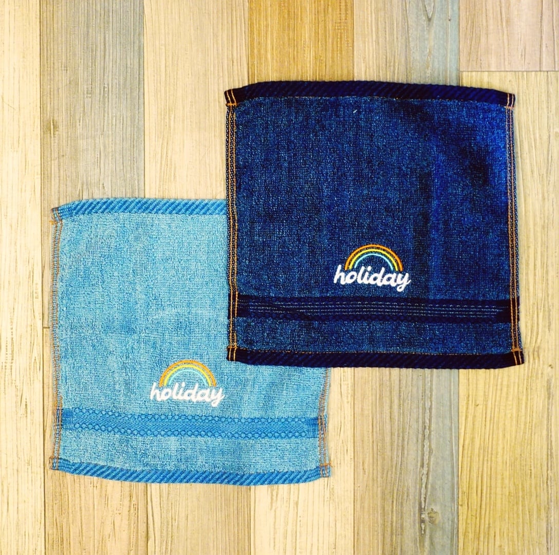 ハワイアン雑貨 インディゴ 刺繍ハンドタオル レインボー ALOHA ヤシの木 スマイル タオルハンカチ