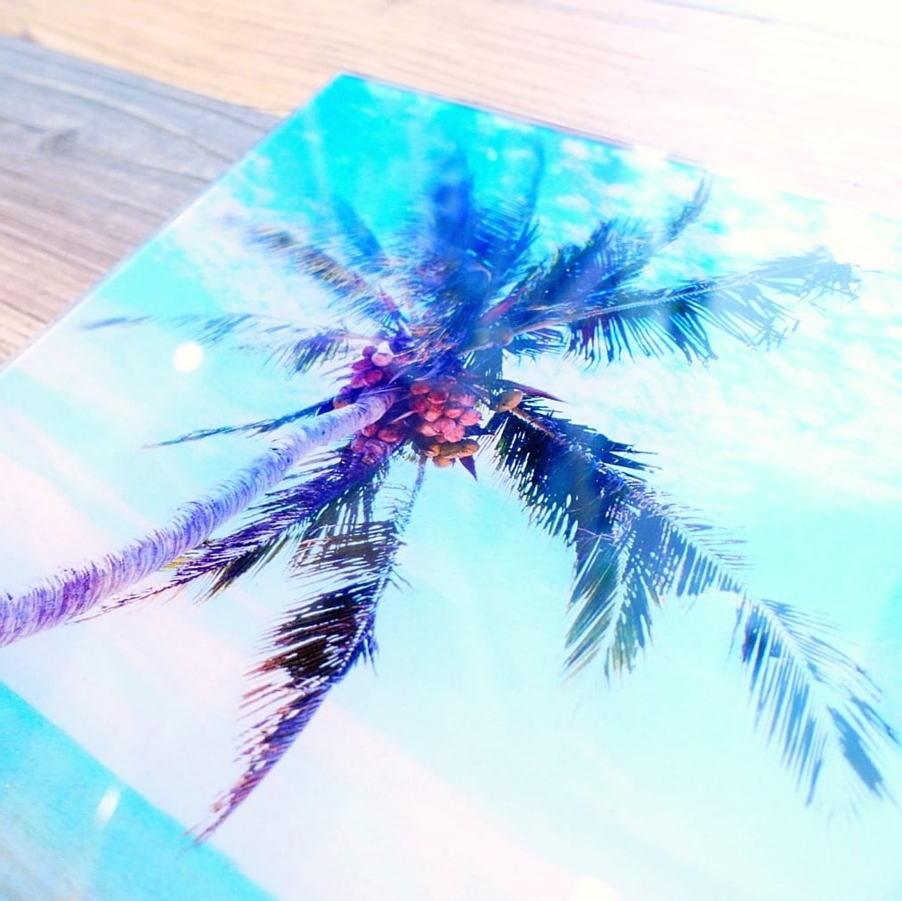 ガラスアートピクチャー40cm ビーチ サーフィン ヤシの木 カリフォルニア ハワイ 南の島 壁掛け 西海岸インテリア