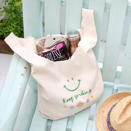 スマイル オーガニックコットン エコバッグ 刺繍 エコバッグ 折りたたみ