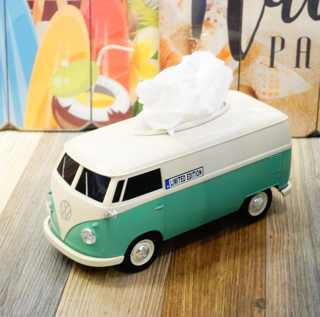 限定カラー フォルクスワーゲン バス ティッシュケース エメラルドグリーン ペンスタンド ツートーン ハワイ 西海岸 インテリア