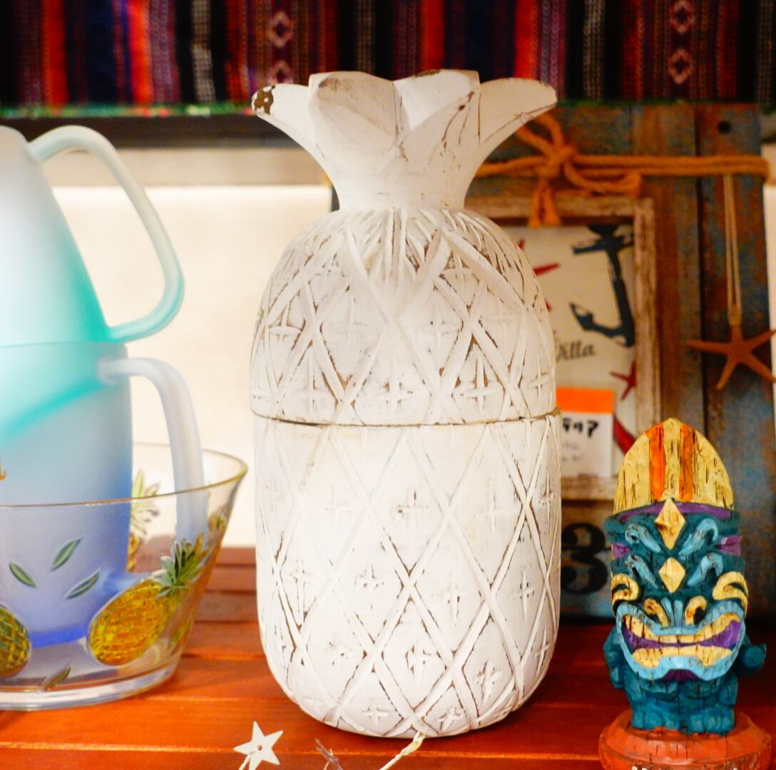 ハワイアン雑貨 パイナップル ウッドケース マリン インテリア 西海岸風 小物入れ