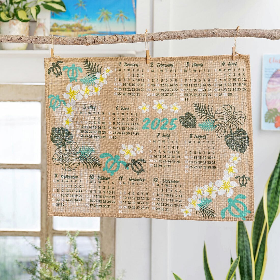 2025 ハワイアンジュート ポスターカレンダー ホヌ 海亀 トロピカル ハワイ 壁掛け